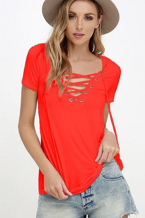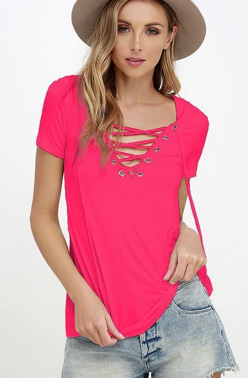 Express New eBay popular summer clothes European and American sexy V-neck solid color bandage T-Shirt Top