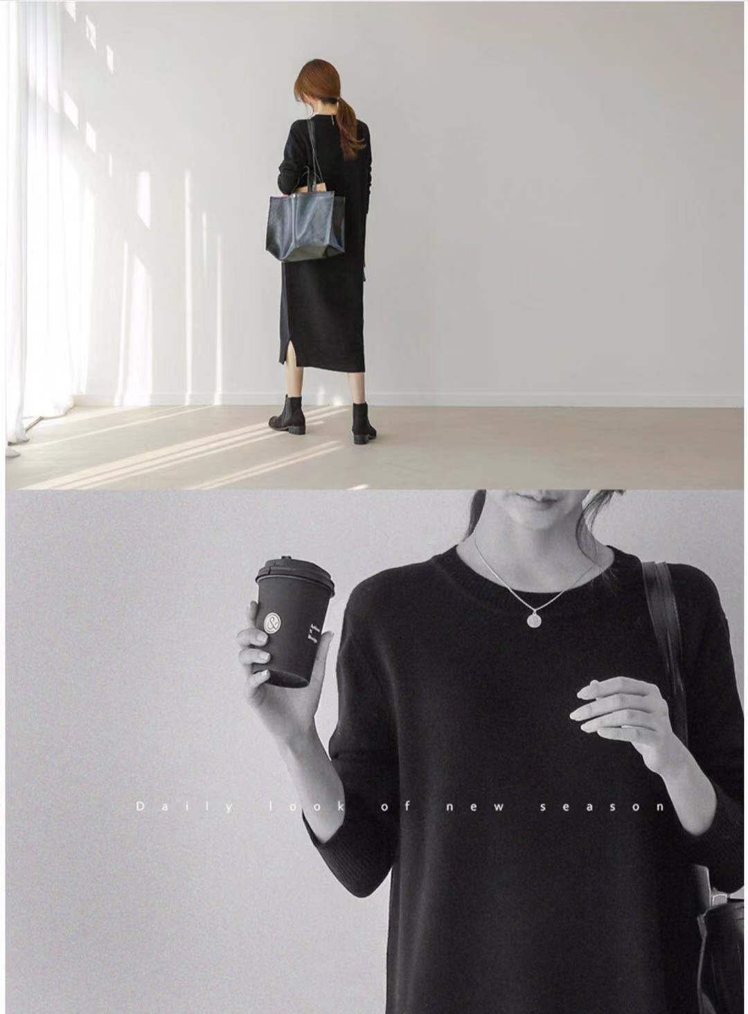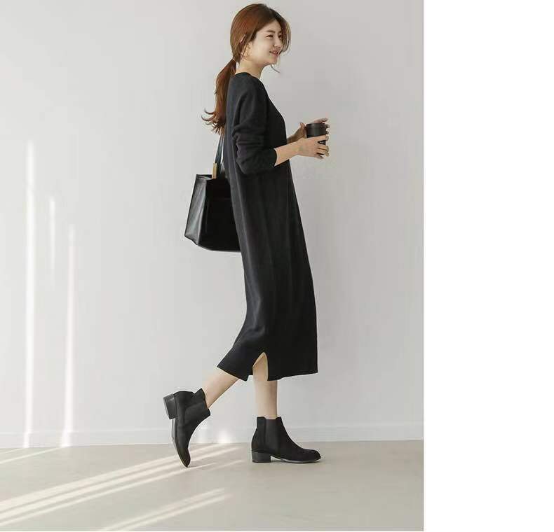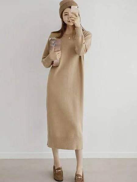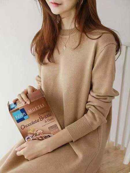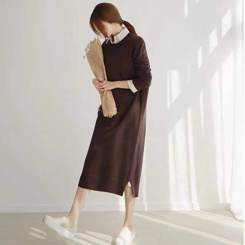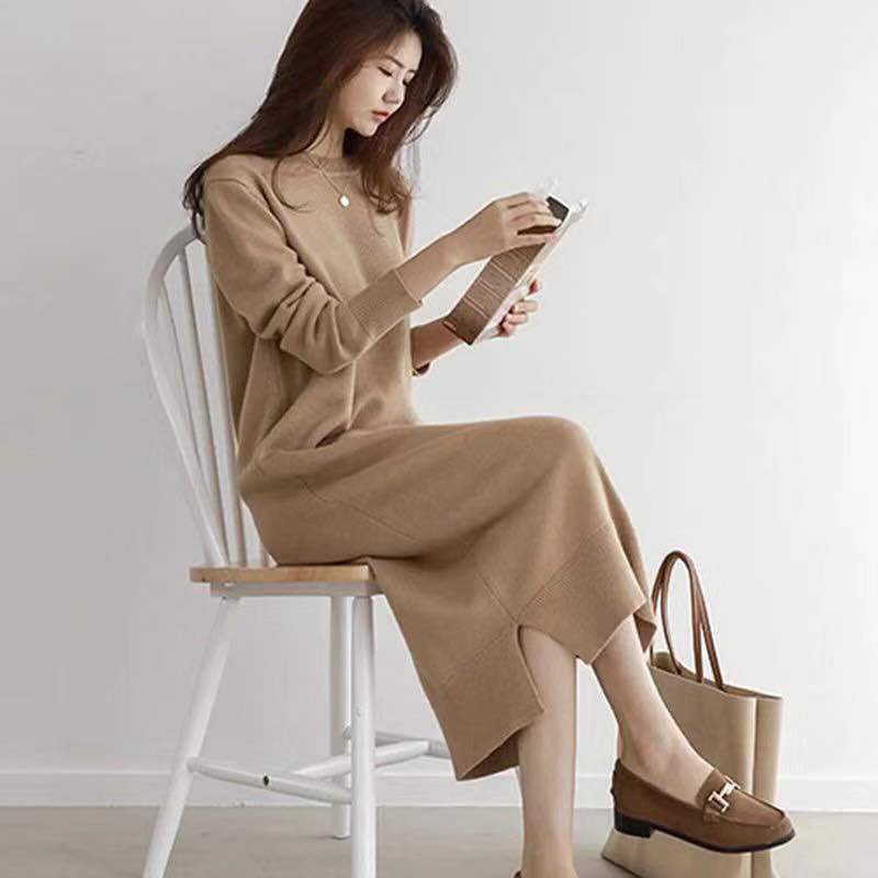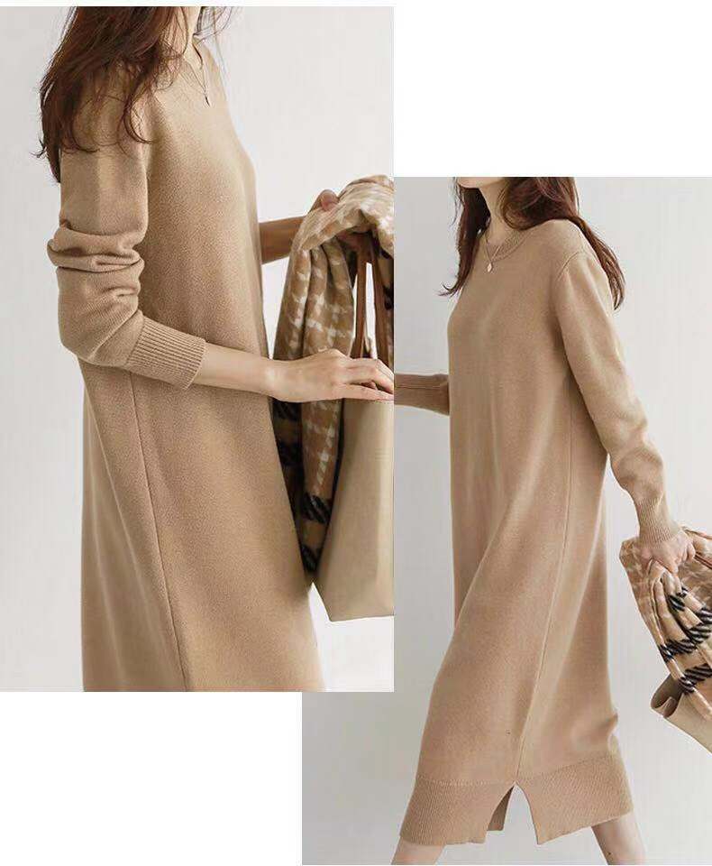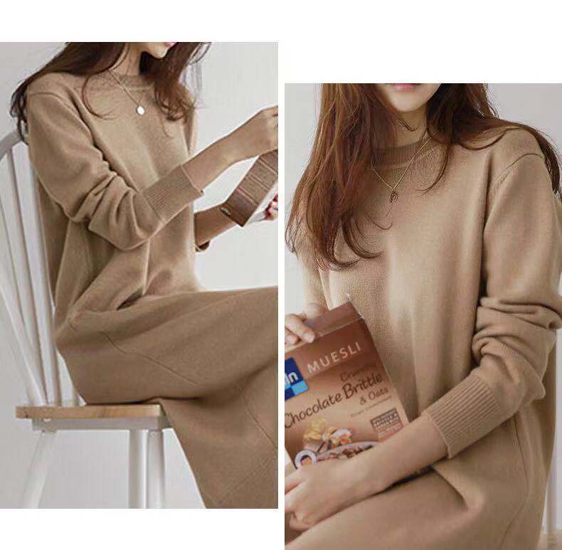 Spot languid women's winter South Korea loose and slender wool dress knee over sleeve bottomed knitted dress