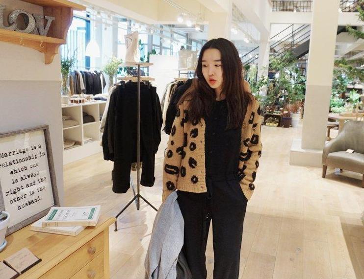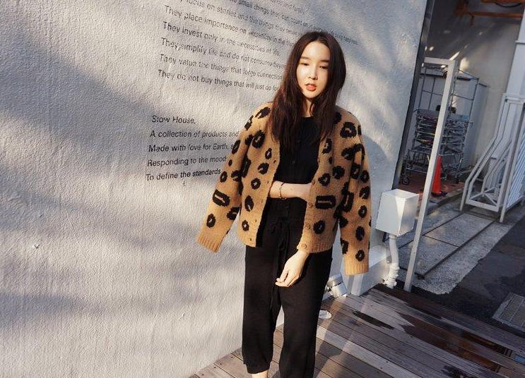 South Korea east gate spring and autumn 2020 women's Korean version of versatile V-neck net red leopard knitted cardigan sweater coat