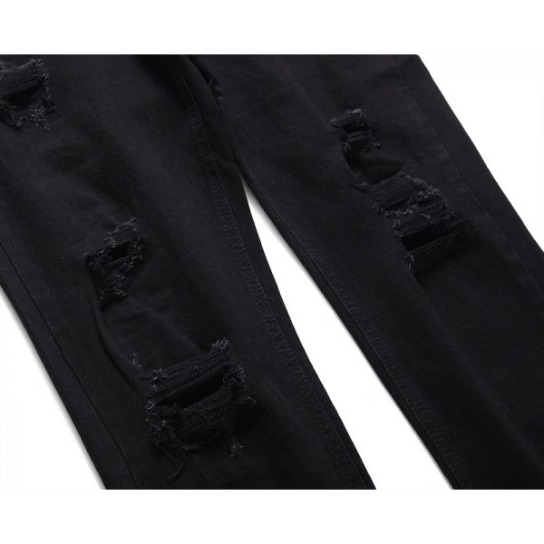 2020 new European and American high street ins net red holes destroy black stretch slim fit small foot jeans pants men's fashion