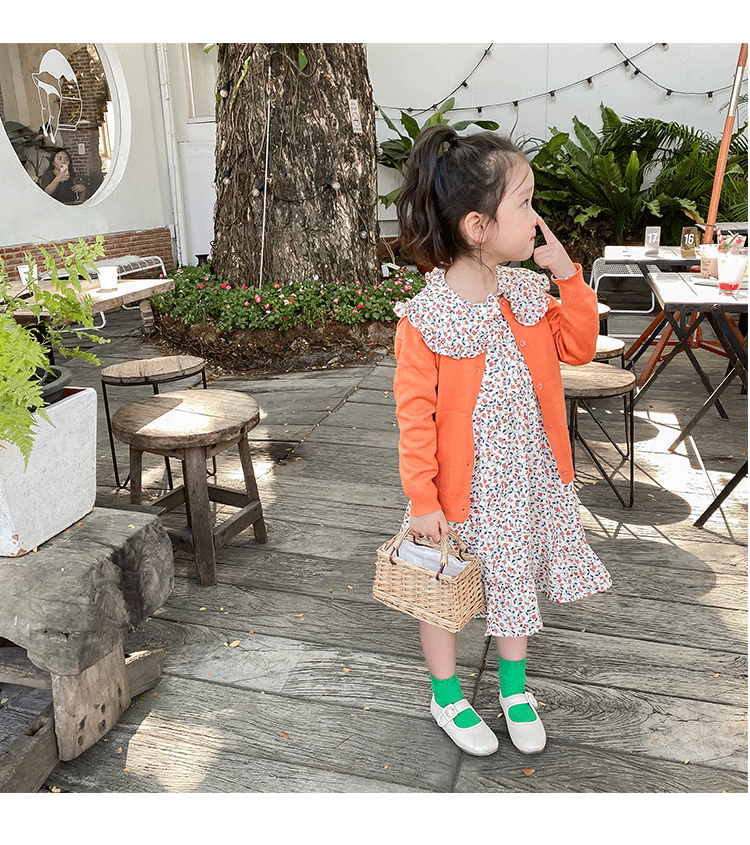 2020 spring children's new Korean girls' warm oil contrast Chiffon floral long sleeve dress with lining hair substitute